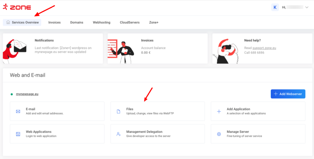 , direct link to phpMyAdmin: https://pma.hel01.zone.eu/ When following a direct link, first enter your domain name without the www prefix (for example, domain.fi) and click Log in