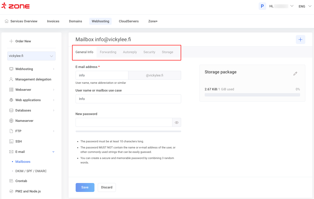 The mailbox can be taken into use immediately in our webmail: https://auth.webmail.zone.fi/