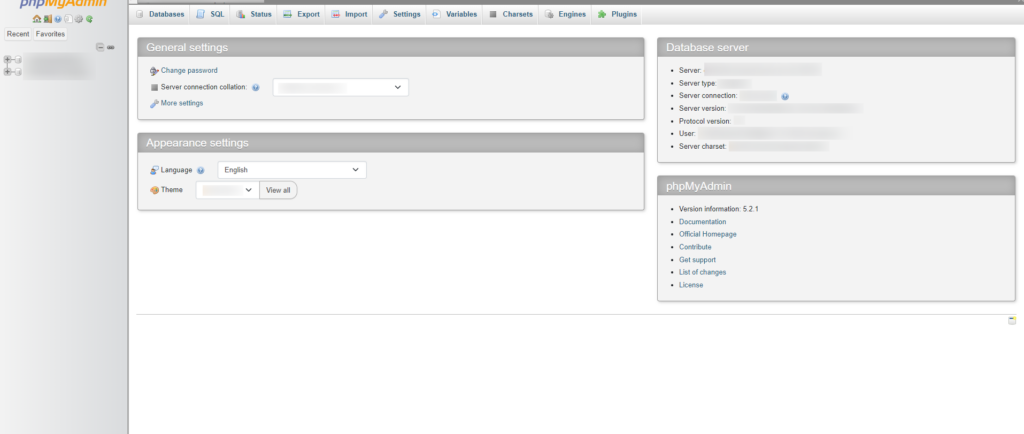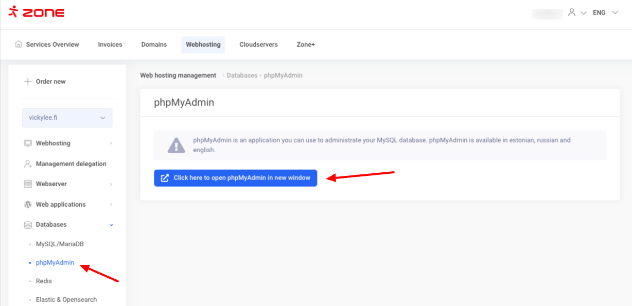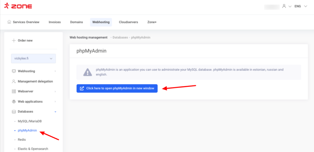 Accessing phpMyAdmin via server management