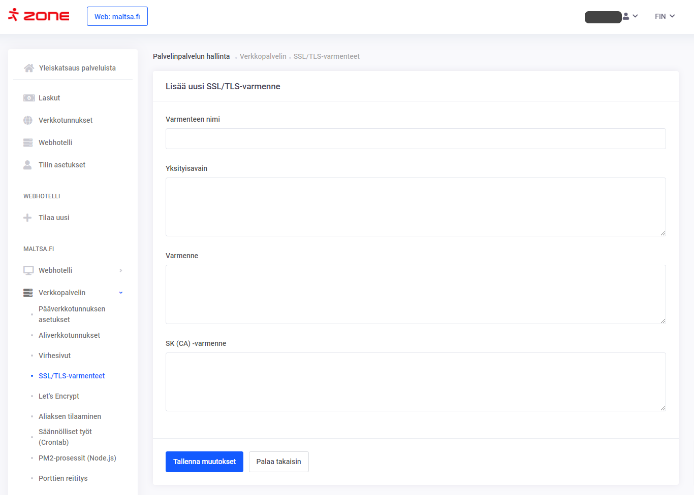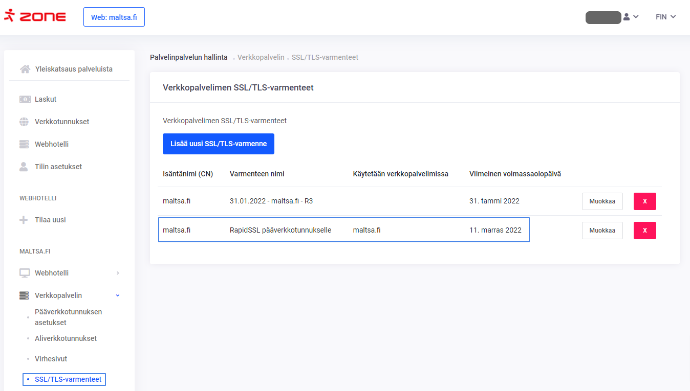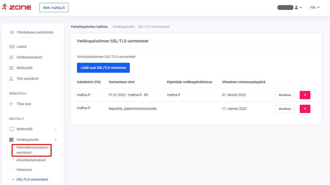 - CA certificate. It can be downloaded from the support site of the certificate issuer (CA – Certificate Authority). Installing it right away is not really mandatory. If you can’t find a suitable one yourself, report it to tuki@zone.fi and our customer support will install it for you.