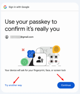 Then select the appropriate confirmation method (passkey, password, or other method).