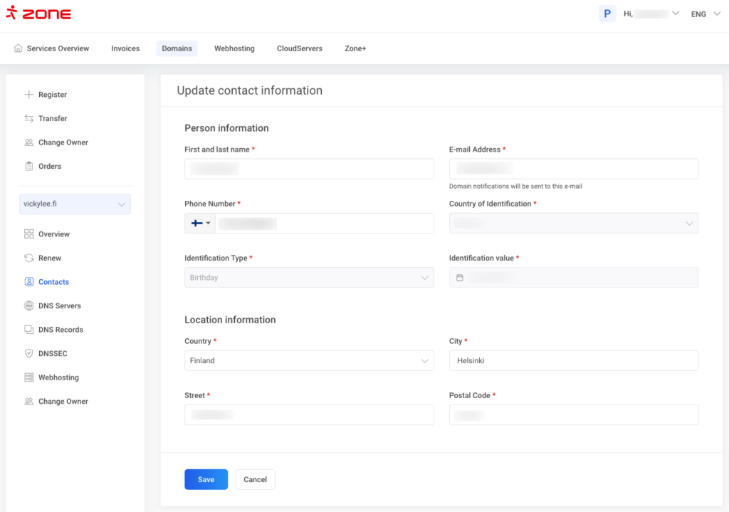 You can change almost all the information beside the owner and if you wish to change the owner, then please contact our customer support at tuki@zone.fi.