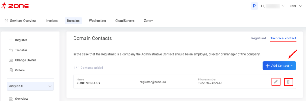 On the next page, you can check and edit the contacts associated with the domain, such as the owner’s email address.