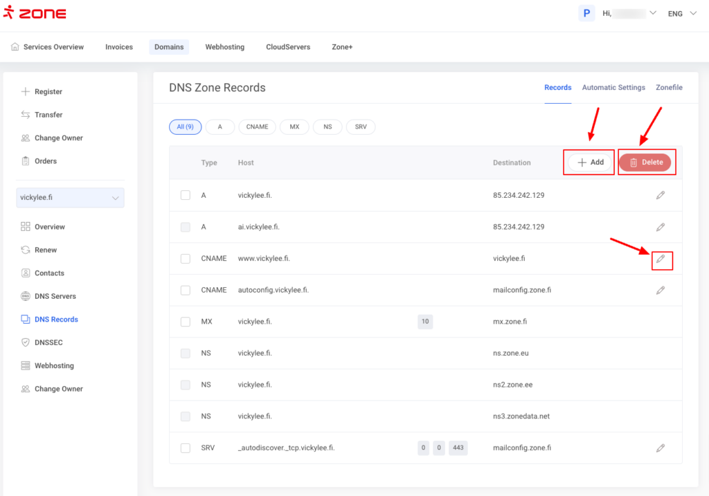 Here you will find instructions on how to change domain settings in My Zone control panel.