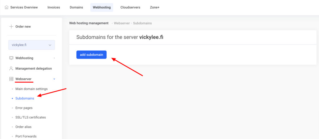 - Is a part of a domain that is located before the main domain, or a prefix, e.g. blogi.zone.fi or staging.zone.fi.