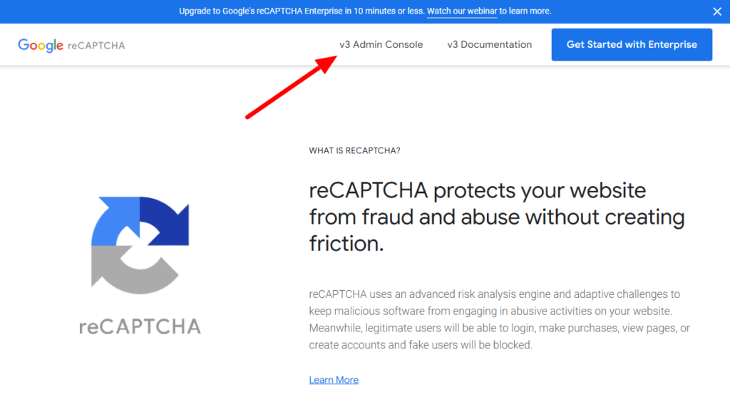 Lomakkeiden suojaaminen verkkosivuilla toimii myös Google reCAPTCHA:lla kirjautumalla Google reCAPTCHA-hallintapaneeliin.
