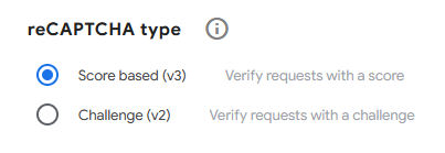 Valitse CAPTCHA-tyypiksi Score based (v3).