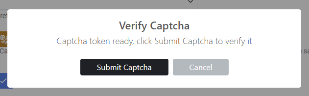 Viimeistele vahvistus napsauttamalla ponnahdusikkunassa Submit Captcha.