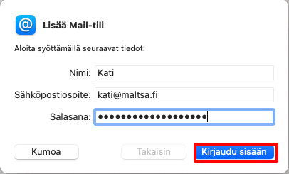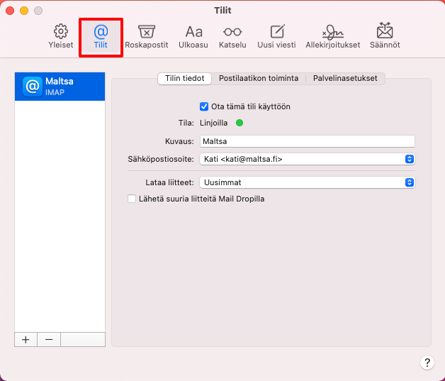 Seuraavat sähköpostiasetukset sopivat sähköposti tilillesi jos sulla on käytössä Mac Mail: