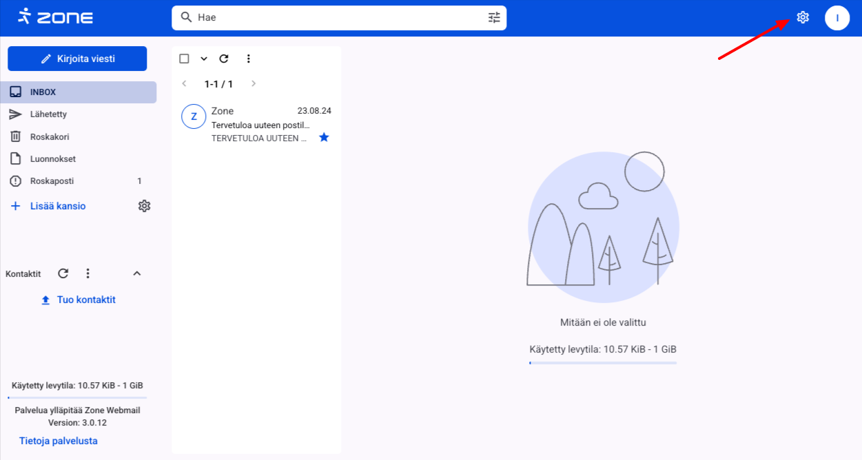 Kirjaudu webmailiin sähköpostitililläsi osoitteessa Webmail.